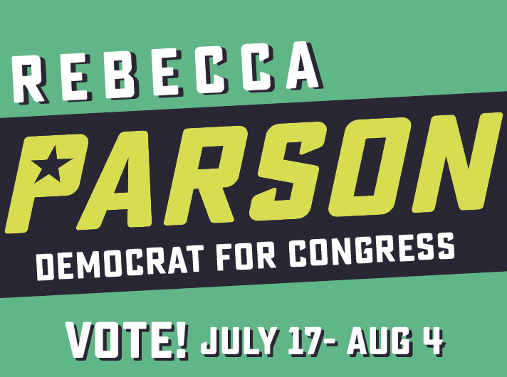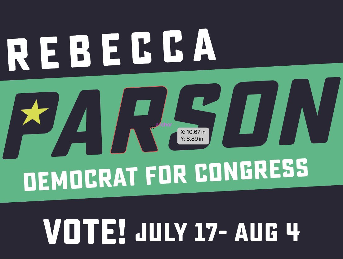 Slanting "Rebecca" and "Democrat for Congress" to match "Parson" will help the whole thing feel more cohesive. I would try centering "Rebecca," as well.pic.twitter.com/DlUExFkErN