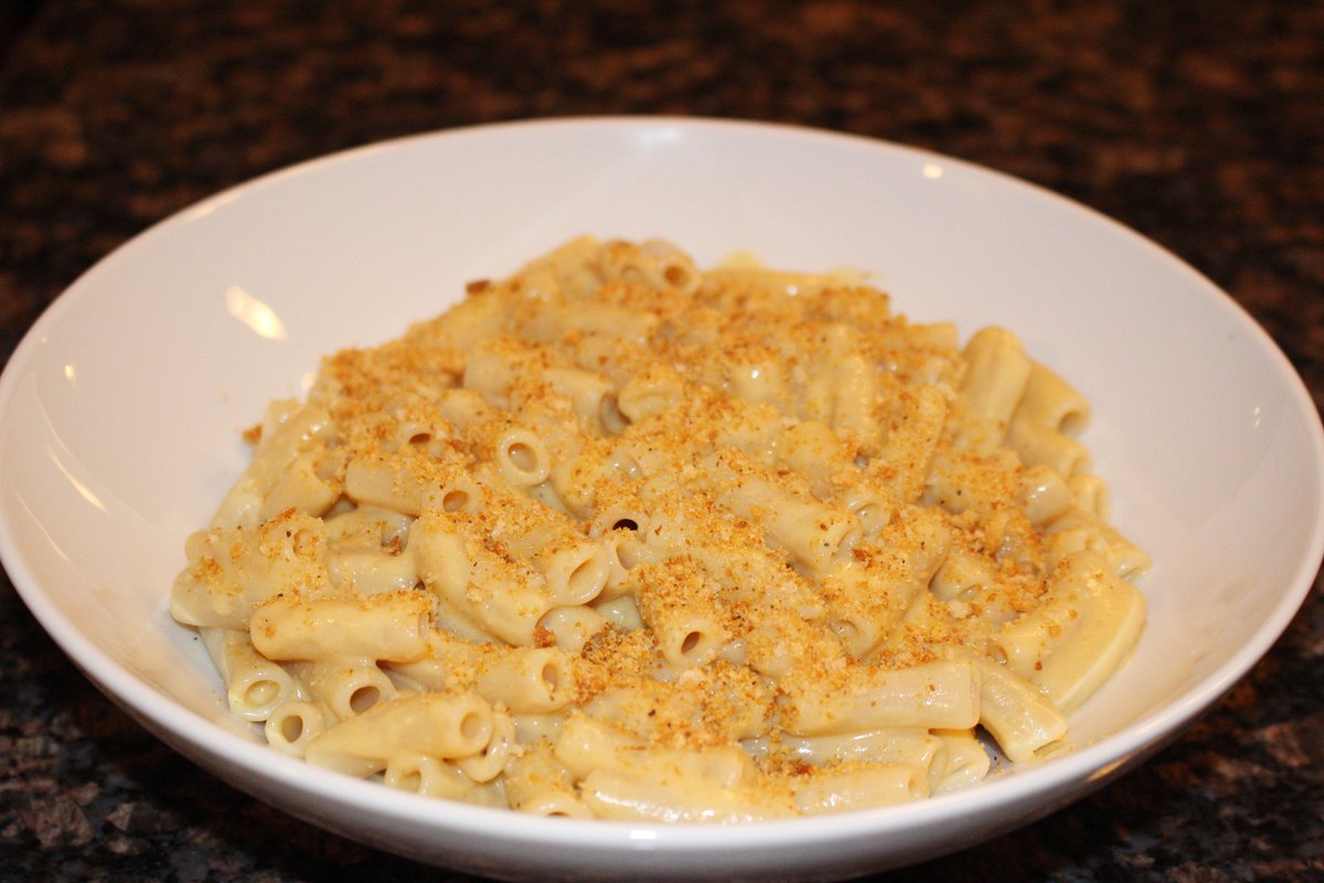 Satisfying gooey cheeseless mac and cheese recipe.