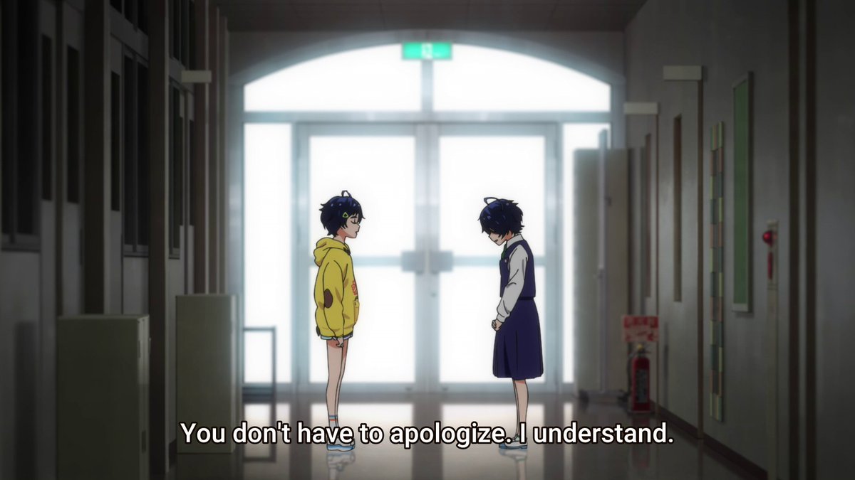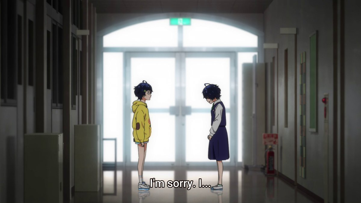 A simple visual shot used effectively here, having the other Ai on the left side of the shot while there's nobody on the right of her in this desolate hallway emphasizes her extreme loneliness. This is a very different Ai, one that didn't have Koito to help her in her despair.pic.twitter.com/hhMGDJanCD