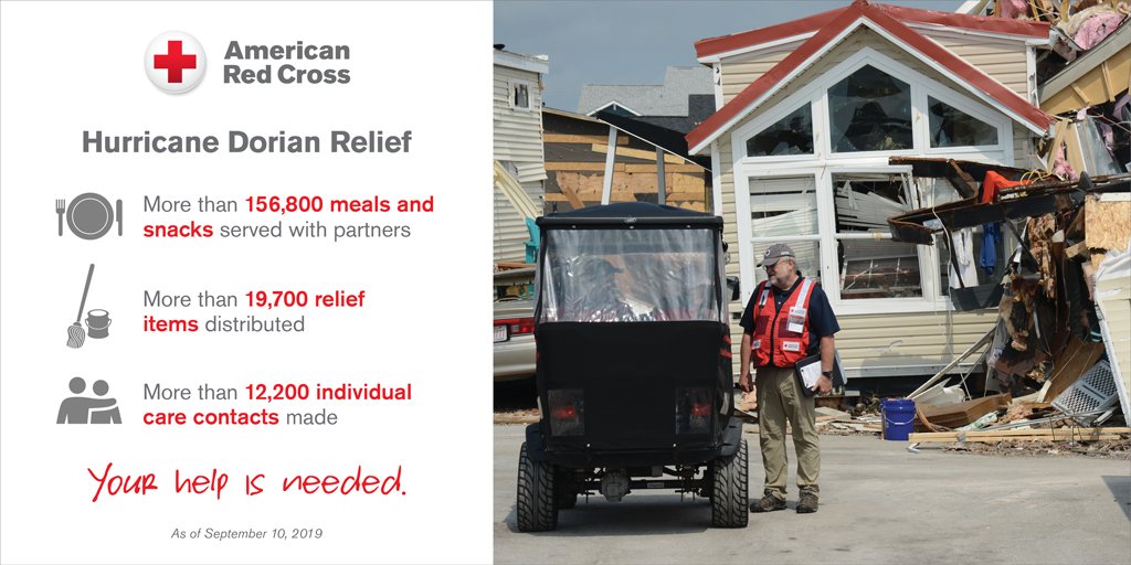 In Hurricane Dorian’s wake, the American Red Cross is providing relief and hope along the Southeast U.S. coast, as well as supporting evacuees from the Bahamas and sending the islands financial aid. Help today at https://bddy.me/34F6YRE pic.twitter.com/owzgL9oJyw