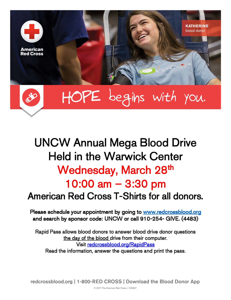 Hope begins with you, #WilmingtonNC! Stop by the @UNCWilmington Annual Mega Blood Drive on March 28 and give the gift of life: http://www.redcrossblood.org pic.twitter.com/936C8EaA6S