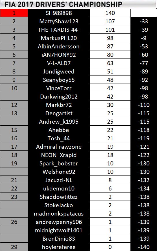 So We Are half way through our championship here on the PS4 Racing league please see the pictures for our current Championship leader board the 1st picture is Wednesday league 2nd picture Sunday Leaguepic.twitter.com/Bi6VRE6969