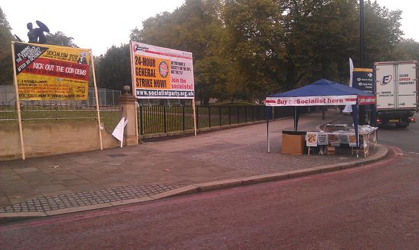 Everything set up & ready to go at Hyde Park for #Oct20 demo. Now we just need the people! #O20 #NSSNpic.twitter.com/ni5hBmtq