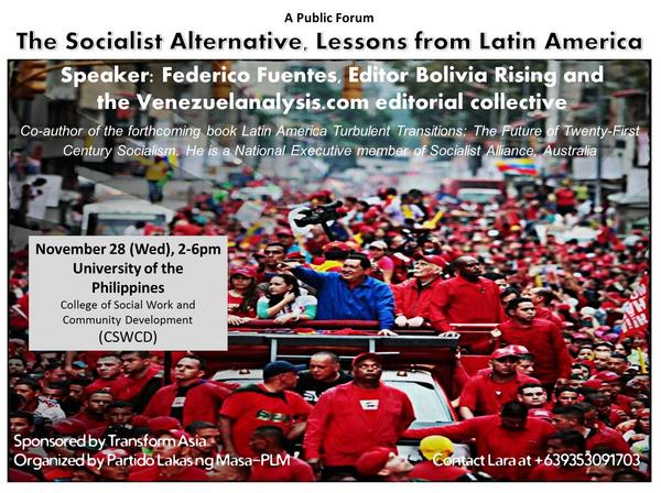 What the РКП? RT @PLMPilipinas Open forum about socialism in Latin Ameeica. Speaker: Federico Fuentes @UPCSWCD Nov28pic.twitter.com/VKRUa9u2