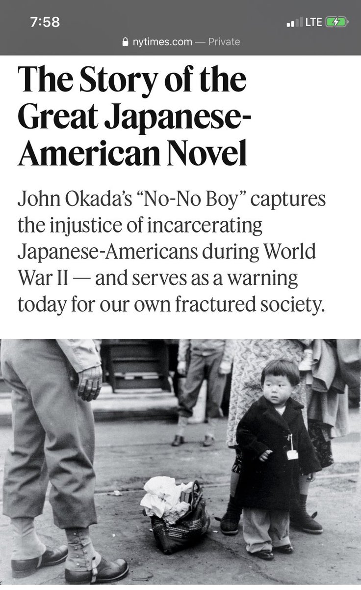 A must read article on John Okada, his classic novel NO NO BOY, the relevance of Japanese American concentration camps to today, and Japanese American literature, including Toshio Mori, Hisaye Yamamoto. A capsule introduction to this essential history.https://nyti.ms/36pbqom
