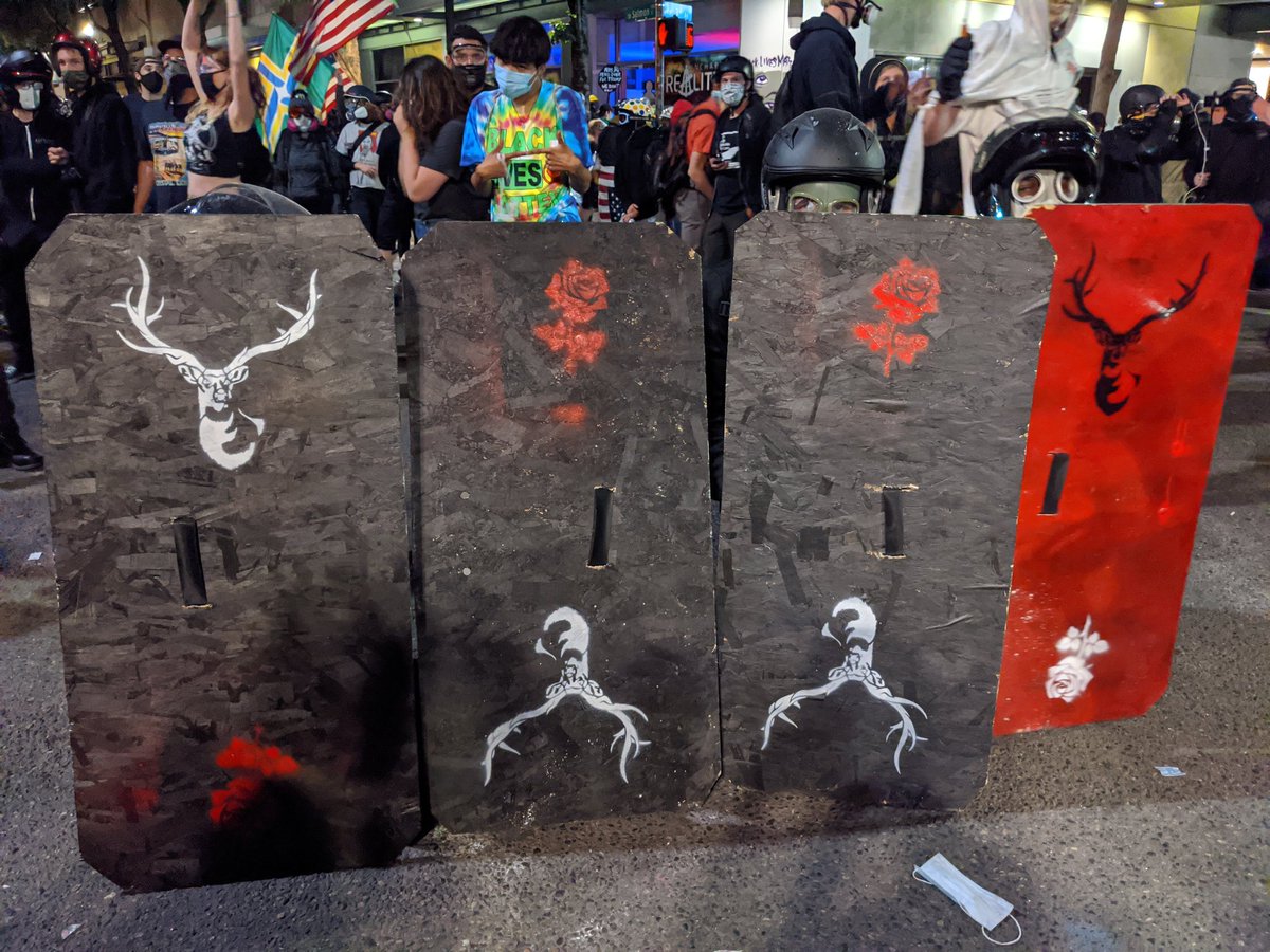 #EUA - A população toma as ruas de#Portland, desde ontem a noite, com seus escudos seguindo os protestos por#BlackLivesMatter