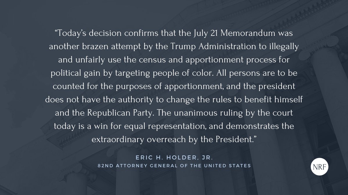The President’s July 21 Memorandum attempted to depart from the bedrock principle that everyone—Every. One.—should be counted equally for the purpose of congressional apportionment. Read the full press release