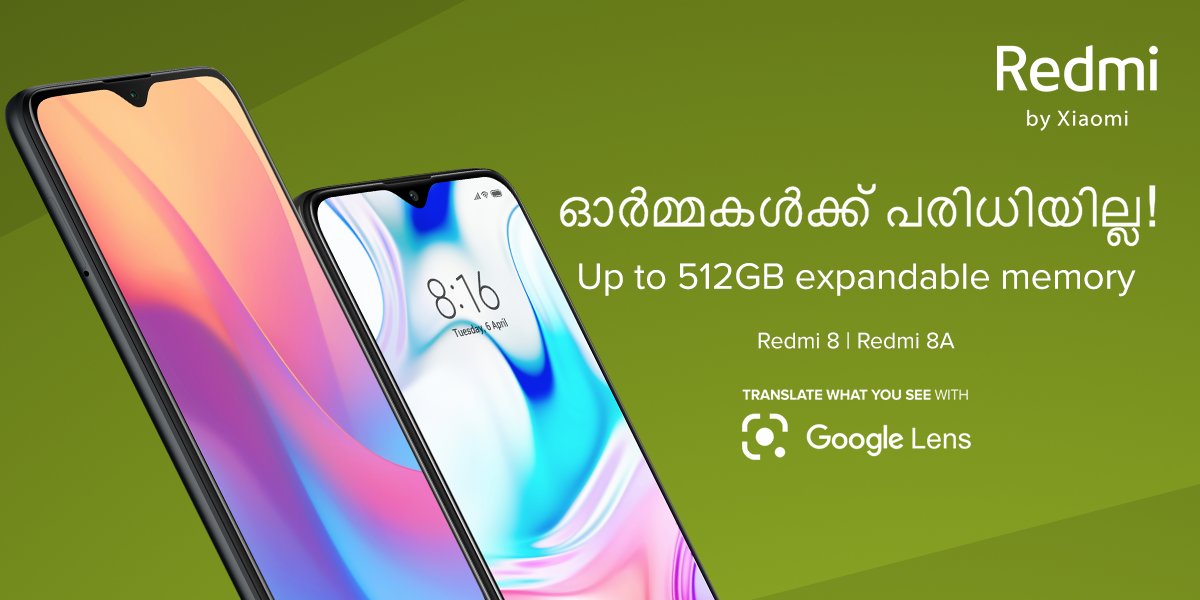 #Dumdaar smartphones -#Redmi8 &#Redmi8A comes with up to 512GB expandable memory! Can't read Malayalam? Translate it using#GoogleLens on your#Redmi device and share a screenshot in the comments below! Let's go.pic.twitter.com/8RReTmIfK1