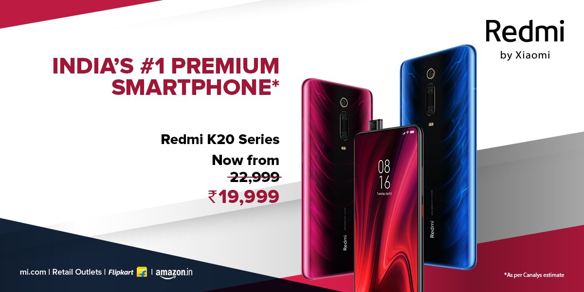 #RedmiK20Pro is India's No. 1 Premium Smartphone! Get the#RedmiK20 Series with up to ₹2500 additional discount on exchange. Starting at ₹19,999. Available on http://mi.com ,@Flipkart,@amazonIN and Retail Outlets.pic.twitter.com/2F8IvoksLs
