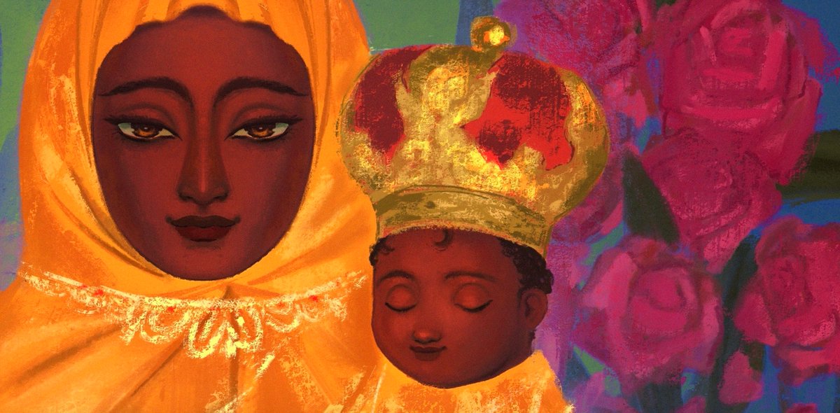 Closeups of an Annai Velankanni/"Our Lady of Good Health" (one of the most well-known Marian apparitions in South India) piece I made for my friend