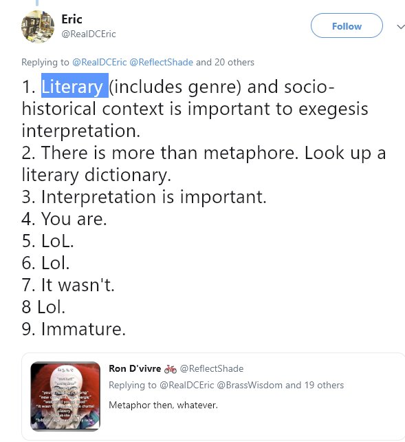 Oh, did Augustine of Hippo tearing up your wet dream of going after a YEC literalist get to you?https://twitter.com/ReflectShade/status/1053142492181393408?s=19 …