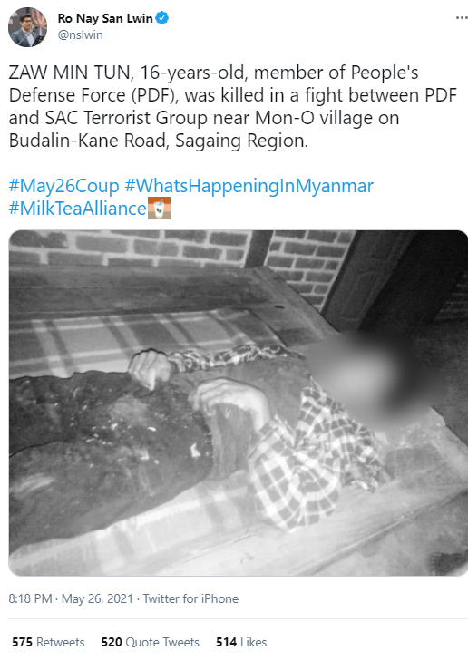 https://twitter.com/LyaHaru/status/1397538894950780931?s=20 … Arresting & Unfair Death penalty by Myanmar Military Terrorists
