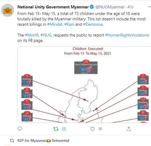 A total73 children under 18 were brutally killed by the Myanmar military.
