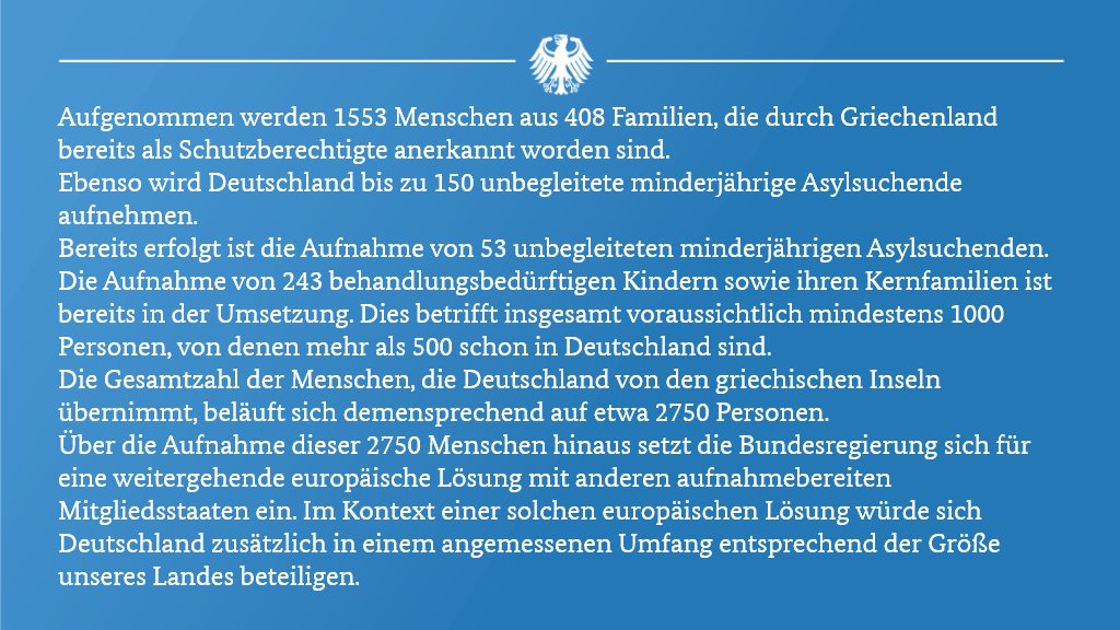Lieber Herr Seibert, sind unter den 408 Familien auch welche aus Moria? Beste Grüße, bsm vom DLF
