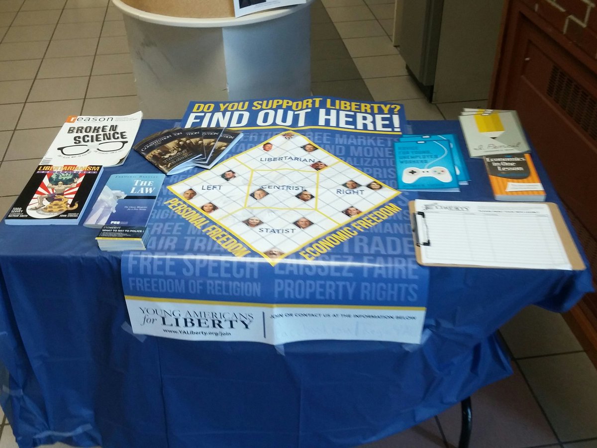Tabling inside the Student Center until 7 tonight! Come talk about Liberty.pic.twitter.com/GAt0SIeo2i