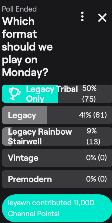 It was decided on last night's Twitch stream since we hit a Bingo. Monday night we are streaming Legacy Tribal Wars!pic.twitter.com/0rSuT5xURK