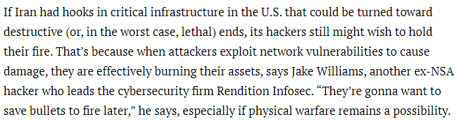 @MalwareJake is quoted in this article from@rhhackett on the possibility of cyberattacks from Iran in response to recent escalations. https://fortune.com/2020/01/08/missile-strike-vs-cyberattack-how-iran-retaliates/ …pic.twitter.com/WdbSXuz3zN