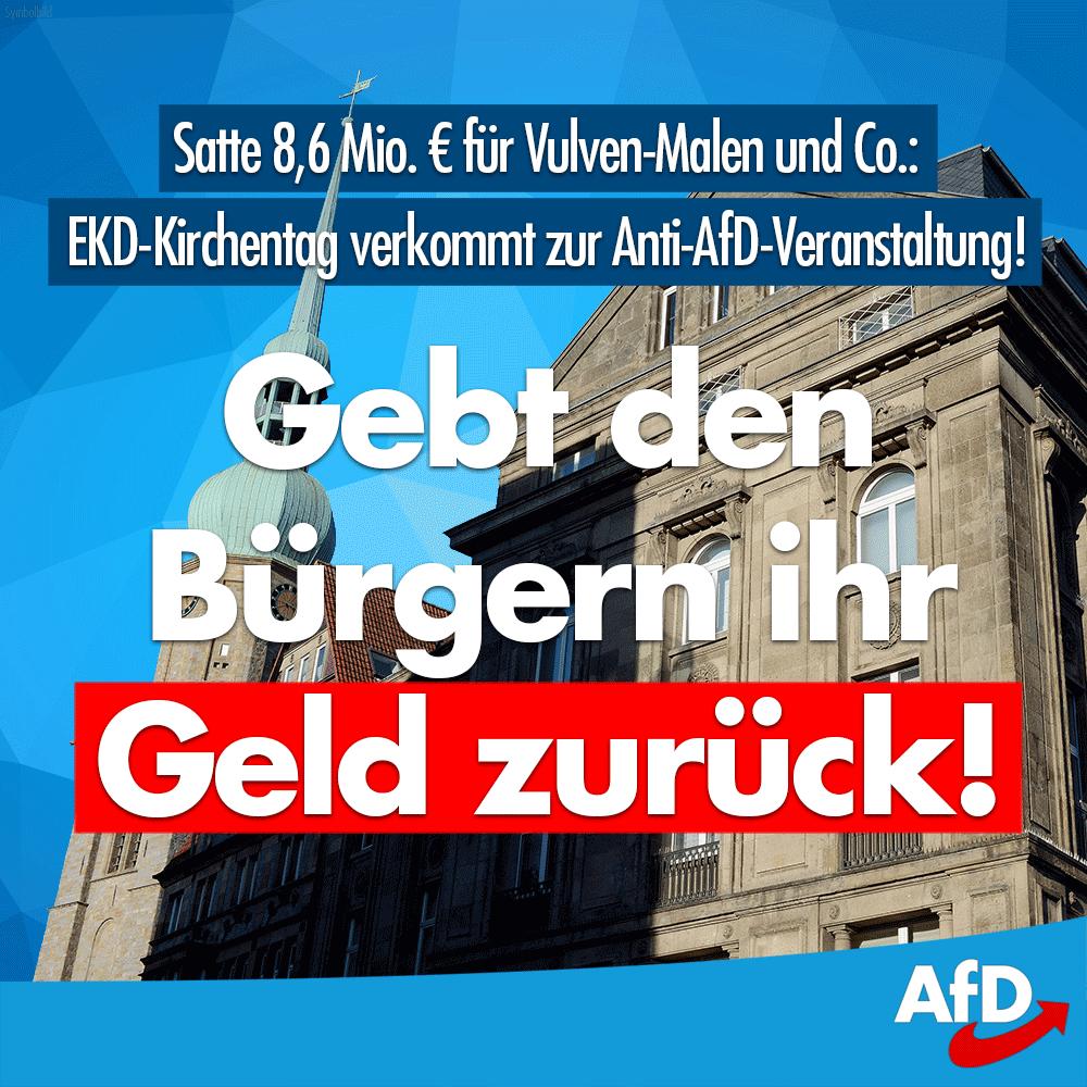#EKD-#Kirchentag2019: Geld zurück an die Bürger! ++ 8,6 Millionen Euro Steuergelder schoss der Staat für den Evangelischen#Kirchentag zu. Dieser entglitt völlig. Die#AfD fordert: Das Geld muss den Bürgern erstattet werden!
