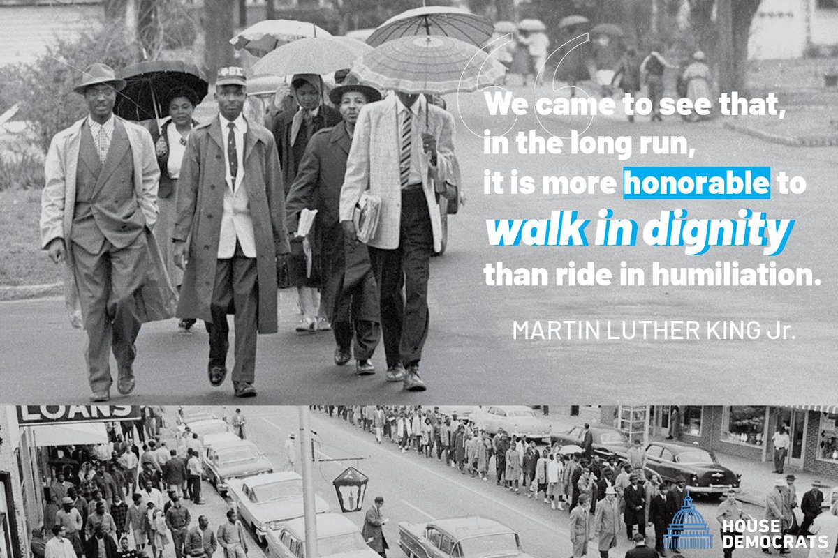 #OTD 63 years ago, Rosa Parks, Martin Luther King Jr. and nearly 100 other Americans were arrested in the #MontgomeryBusBoycott for peacefully protesting an unjust, segregated public transit system. We must continue their fight for equality today. #BlackHistoryMonthpic.twitter.com/uaKt5Sup5T