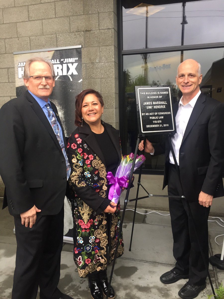 The Renton Highlands Post Office is now officially named in honor of James Marshall “Jimi” Hendrix! It was an honor to join Ms. Janie Hendrix, USPS Seattle District Manager Darrell Stroke, and members of our community in paying tribute to the rock and roll icon. #JimiHendrixpic.twitter.com/wfynmYIdut
