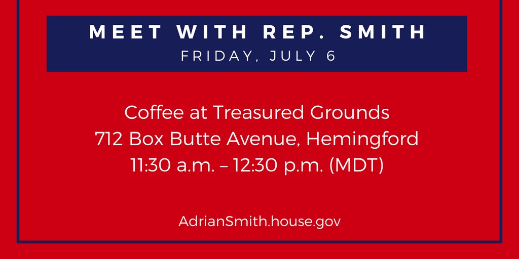 I invite anyone in the Hemingford area to meet me for coffee today at Treasured Grounds from 11:30-12:30 MDT. Hope to see you there!pic.twitter.com/BzivY98wgc