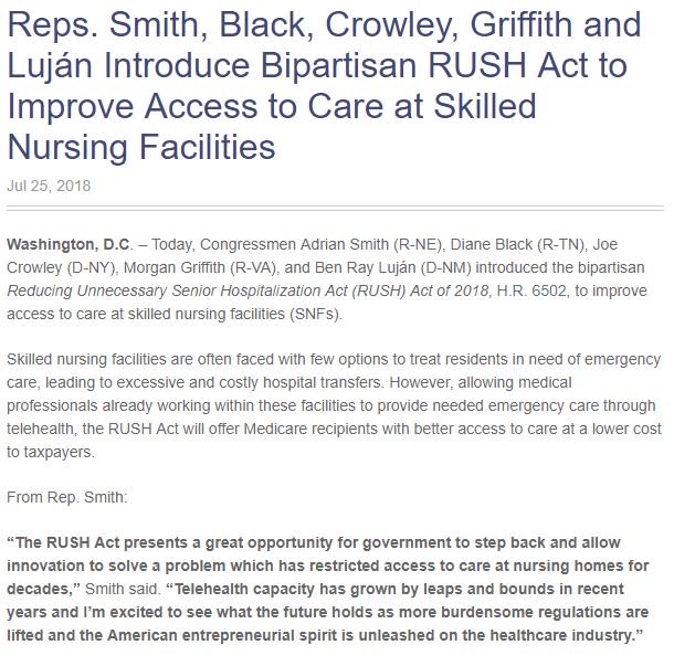 Excited to introduce the bipartisan #RUSHAct to improve access to care at skilled nursing facilities through #telehealth at a lower cost to taxpayers. #HR6502 https://adriansmith.house.gov/press-release/reps-smith-black-crowley-griffith-and-luj%C3%A1n-introduce-bipartisan-rush-act-improve …pic.twitter.com/AeVQXPb7Z7