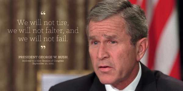 "We will not tire, we will not falter, and we will not fail." - President George W. Bush #911anniversarypic.twitter.com/Drzr7kBlQw