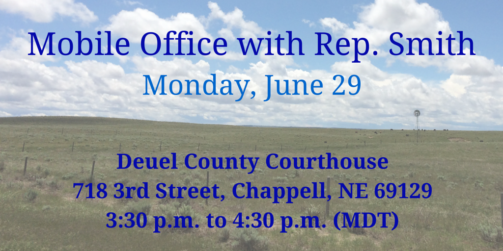 I'm hosting a mobile office in Chappell this afternoon. Hope you can come and talk with me. #NE03pic.twitter.com/r4MkwFHYCv