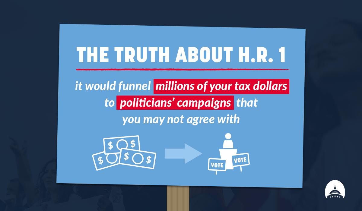 H.R. 1 makes the government work for politicians, not the people. If Democrats had their way, middle-class Americans would have millions of their hard-earned tax dollars funneled to candidates and campaigns that they don’t even support.pic.twitter.com/SLxkCn6eax