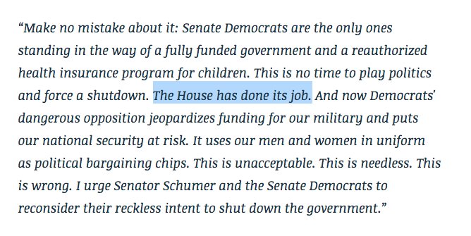 But the house will be recessed for the weekend? Doesn't seem like you really care weather there's a shutdown or not. Thanks for playing the "let's blame the democrats for our inability to govern game".