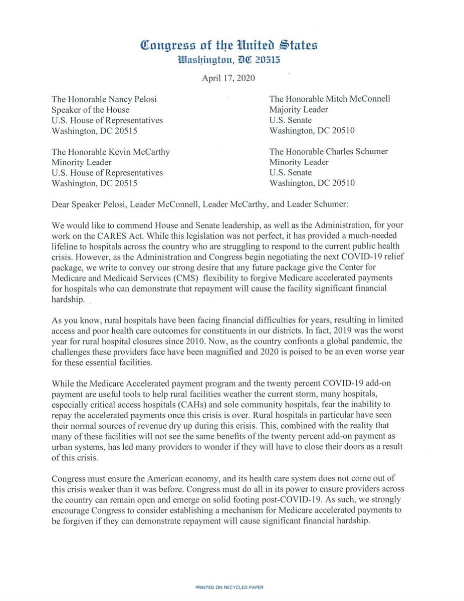Congressman, you've been saying that Dems have been playing politics with PPP for weeks now. You wanted a "clean" bill increasing $ for PPP, but Dems wanted it to include $ for hospitals (and food assistance). Would have been nice if you held your current position 2 weeks ago.