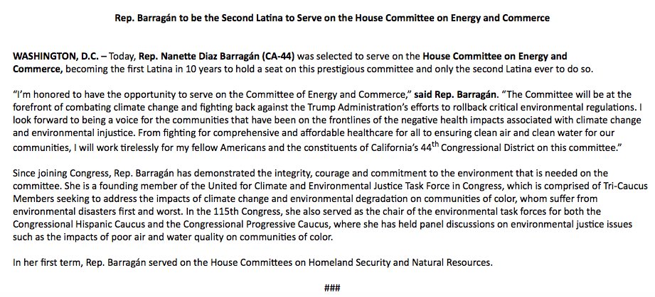 From fighting for comprehensive and affordable healthcare for all to ensuring clean air and clean water for our communities, I will work tirelessly for my fellow Americans and the constituents of #CA44 on the committee.