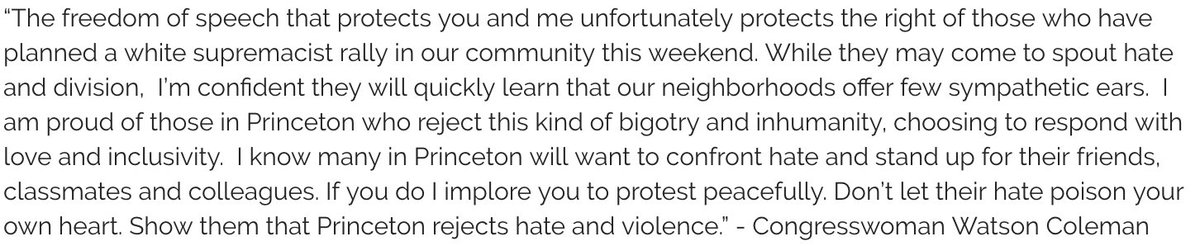 A rally of white supremacists is planned for this Saturday in Princeton. They will quickly learn that our neighborhoods offer few sympathetic ears. I am proud of those in Princeton who reject this kind of bigotry and inhumanity, choosing to respond with love and inclusivity.