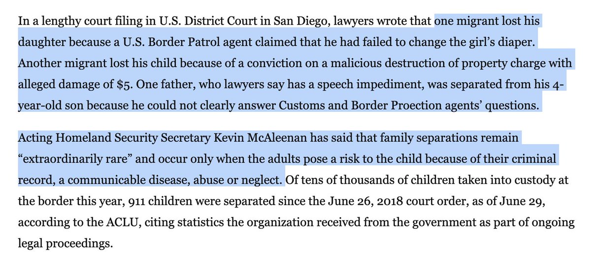 When @DHSMcAleenan spoke to Congress earlier this year he assured us that separations would occur only in the rare cases in which the parent posed a danger to the child.pic.twitter.com/6GC5LfZp03