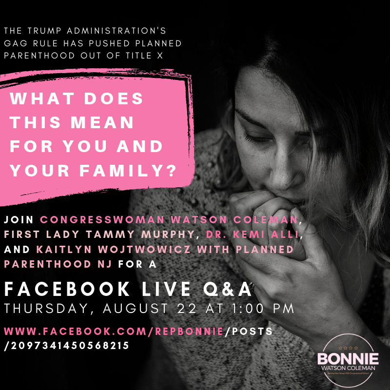 Extremely concerned that the Trump administration's Title X gag rule has now forced Planned Parenthood out of the program, putting care for millions at risk. I'll be with @FirstLadyNJ, Dr. Kemi Alli, and Kaitlyn Wojtowicz of PPNJ for a Live Q&A tomorrow: https://www.facebook.com/RepBonnie/posts/2097341450568215 …pic.twitter.com/nAsXYkchgb