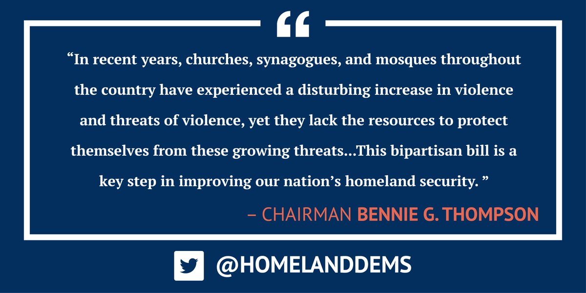 Read more: https://homeland.house.gov/news/legislation/thompson-bill-to-protect-churches-synagogues-and-mosques-from-terror-becomes-law … pic.twitter.com/L5ub33nFac