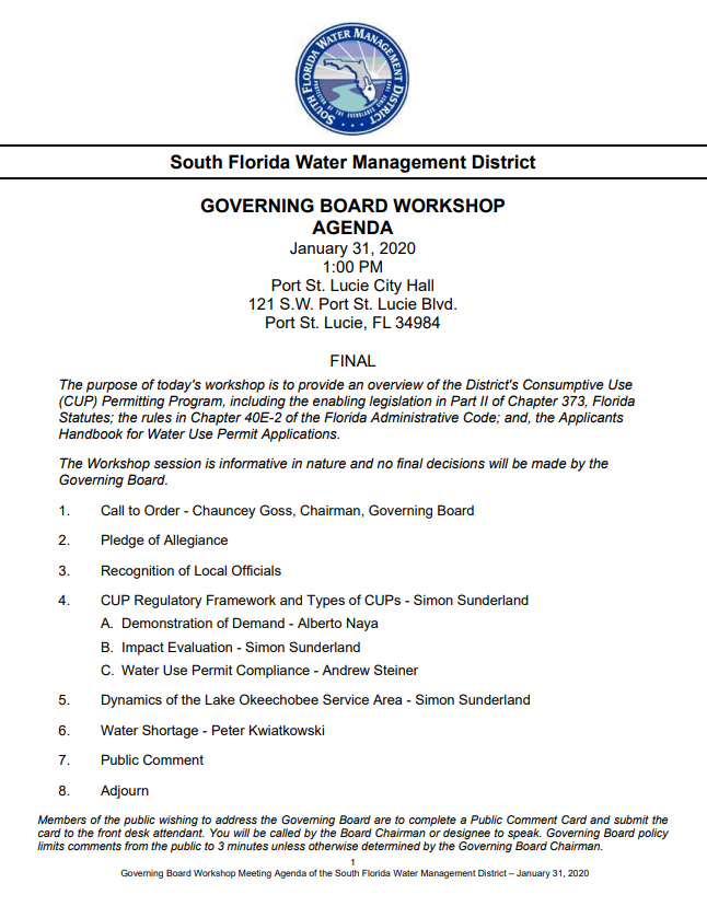 @SFWMD is hosting two public meetings at Port St. Lucie City Hall this week. These meetings will cover a variety of topics (like consumptive use permits) and are a critical opportunity for our community to make our voices heard. I hope to see many of you there!pic.twitter.com/xzGhRneSaY