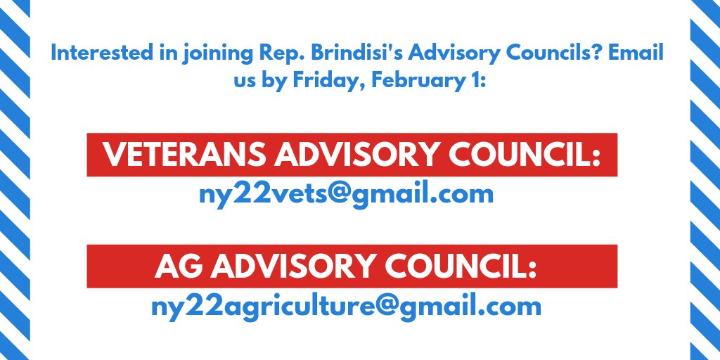 I've been appointed to the @VetAffairsDems & @HouseAgDems Committees, and I am setting up advisory councils to help bring #NY22 voices to Congress. If you are interested in joining, please send us an email by Friday, February 1. Details 👇pic.twitter.com/vTFzikVRUn