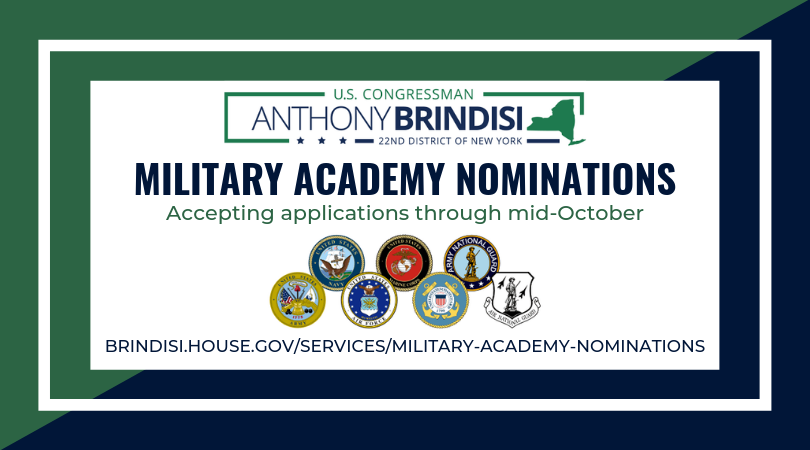 If you or someone you know is interested in attending a service academy, it’s time to start the application process! Visit my website for more info: https://brindisi.house.gov/services/military-academy-nominations …pic.twitter.com/ISsKkfr16Z