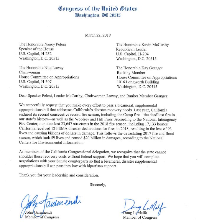 While we are on the road to rebuilding, our community is still recovering from last year’s devastating #WoolseyFire and #HillFire. That’s why I joined California colleagues on both sides of the aisle to call for a disaster funding bill to ensure our recovery needs are met.pic.twitter.com/fJ5txL35Tu
