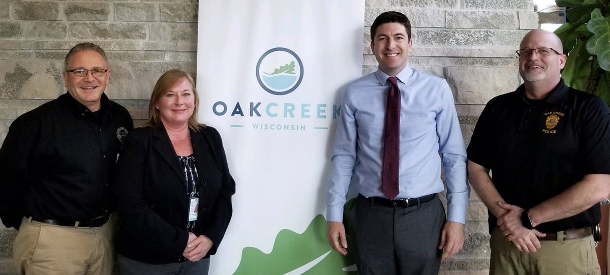 Great meeting with @CityofOakCreek Mayor Daniel Bukiewicz, @OakCreekPolice Chief Steven Anderson, and City Clerk Catherine Roeske! #WI01pic.twitter.com/hfOxZo3blz