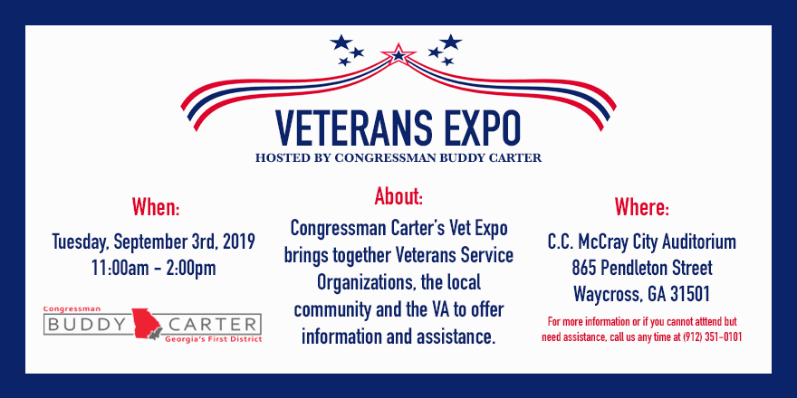 NEXT WEEK: I will be hosting my Veterans Expo at the C.C. McCray Auditorium in Waycross. Anyone who is looking for more information about Veterans Service Organizations, please stop by!pic.twitter.com/JKDGRbwc29