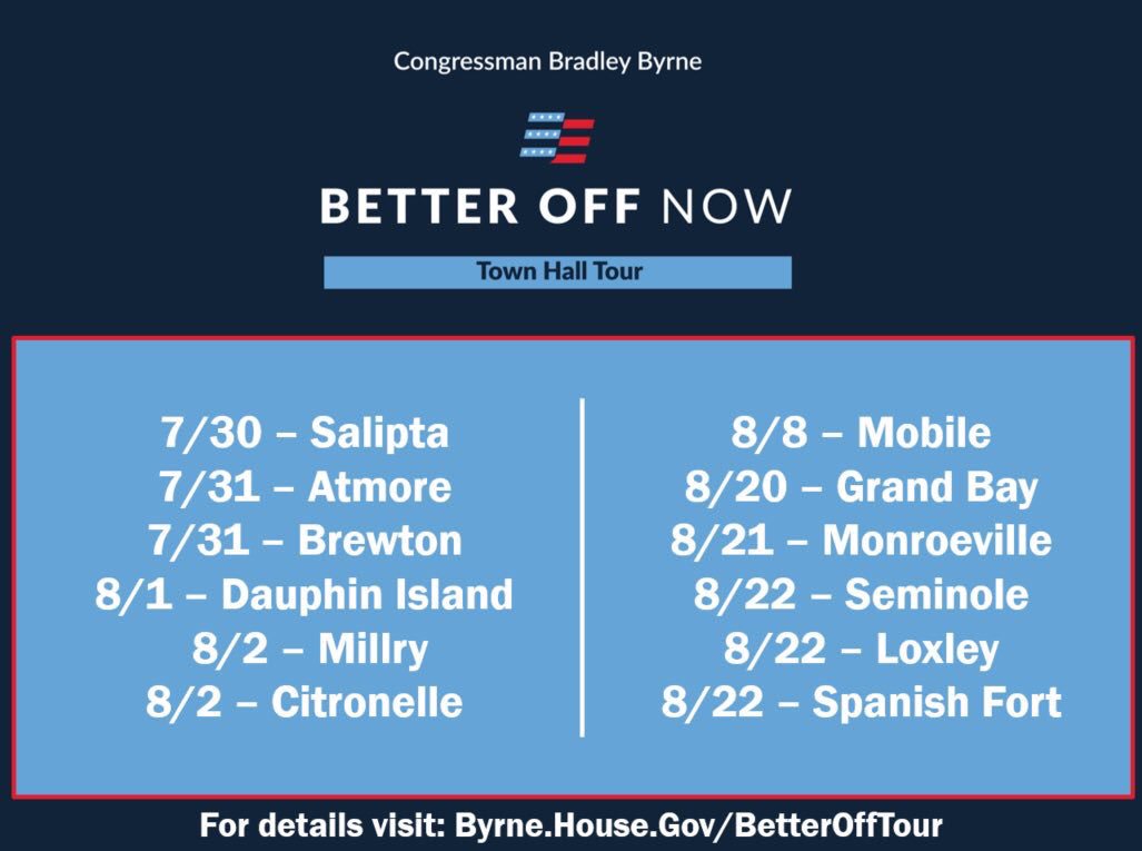 My #BetterOffNow Town Hall Tour stops today at the Connie Hudson Mobile Regional Senior Center in West Mobile. Hope to see you there! Details here: https://byrne.house.gov/BetterOffTour  #ALpoliticspic.twitter.com/XNoqrj3QaC
