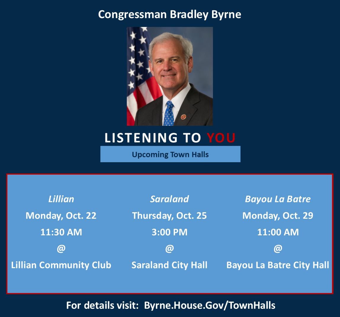 MONDAY: I hope you will join me on Monday morning at 11:00 am for my town hall meeting at #BayouLaBatre City Hall. I hope to hear from you! #ALpoliticspic.twitter.com/qi2L9Os3Wf