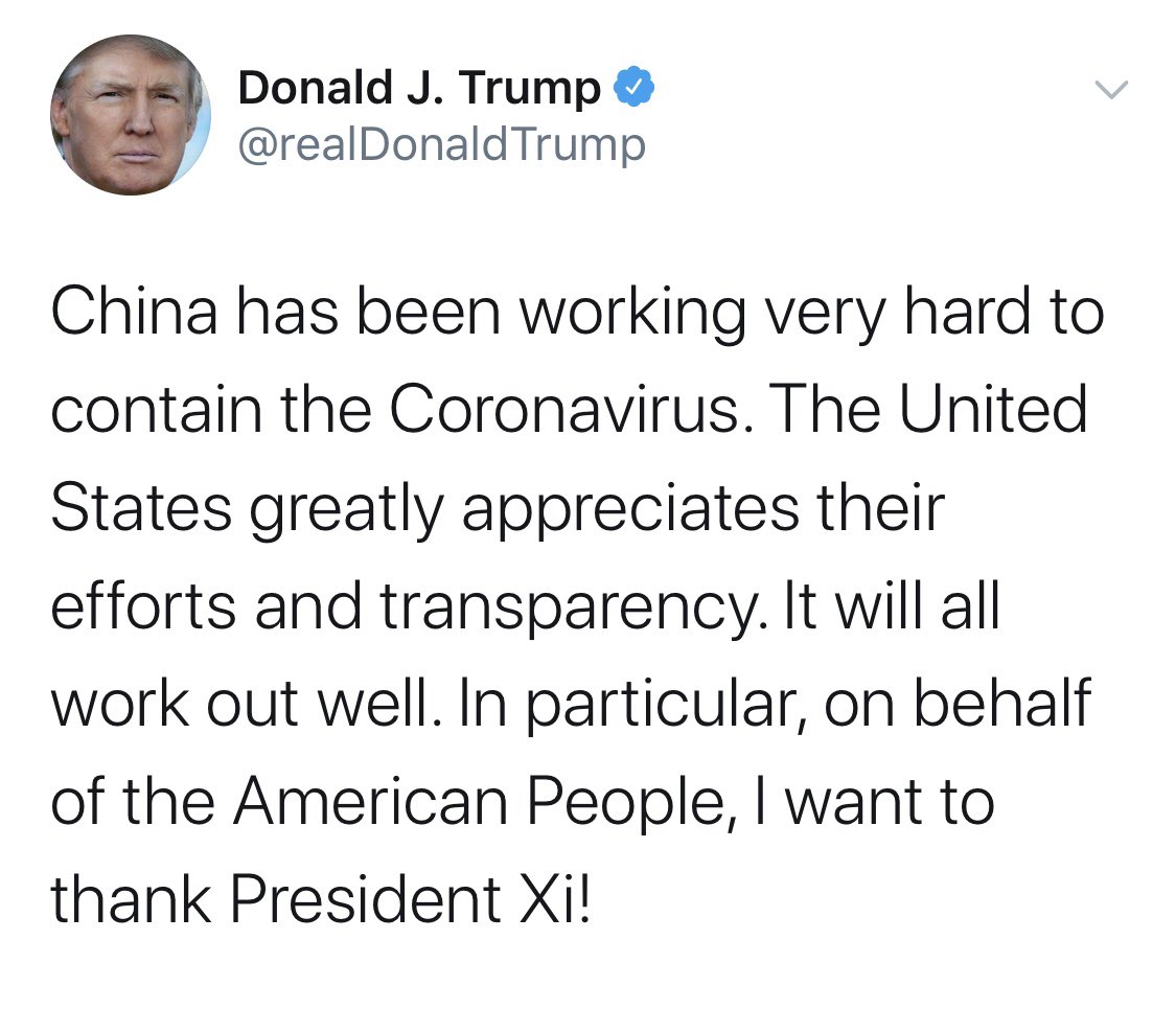 It doesn’t matter what the Chinese did or did not do. It is the President’s job to protect American lives, regardless of the threat or where it comes from. And Trump failed completely to carry out that sacred responsibility.