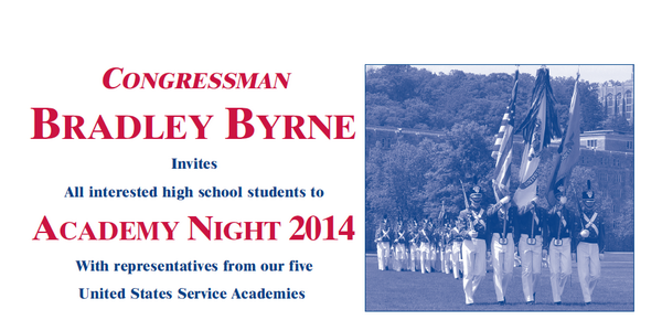 TONIGHT: Interested in attending a US Service Academy? Don't forget about my Academy Night. http://byrne.house.gov/sites/byrne.house.gov/files/academy%20night%20poster%202014.pdf …pic.twitter.com/b8oqyKsCjk