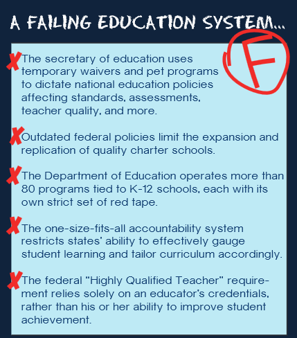 Our nation's K-12 education system is broken. Too many students are struggling. A different approach is needed. #NCLBpic.twitter.com/syWtW76CVm
