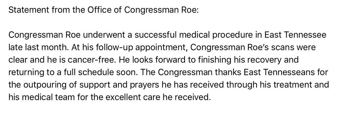 Statement from the office of Congressman Roe:pic.twitter.com/UEnYXnr4xQ