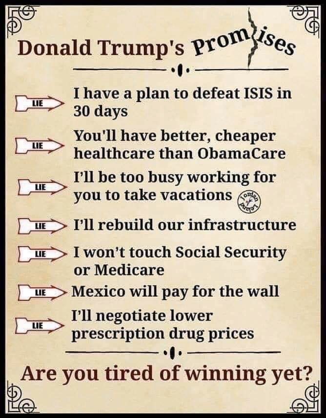 Promises broken. Criminal activity committed. @realDonaldTrump and all of his supporters in Congress should be jailed for crimes and/or accessory after the fact.
