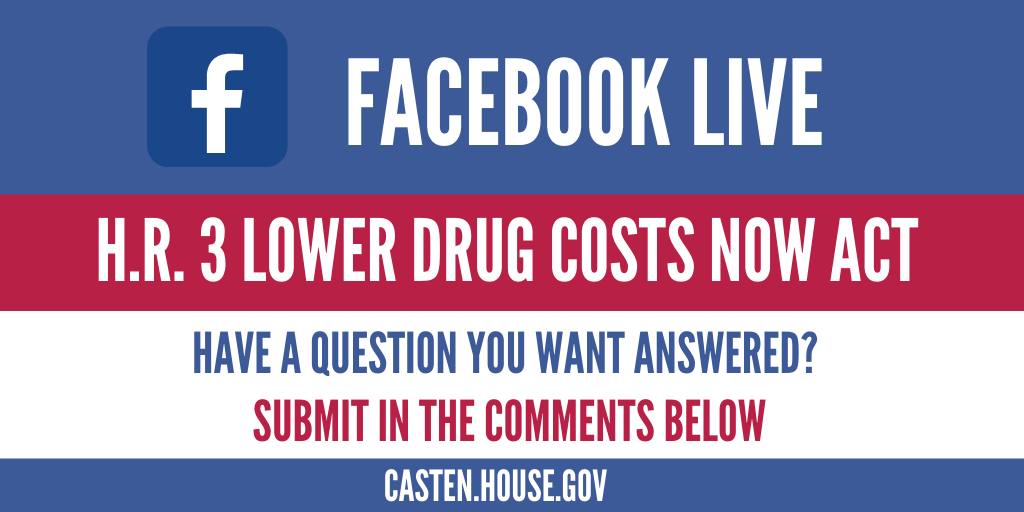 TOMORROW: I will be live on Facebook to answer your questions on #HR3, @HouseDemocrats' bill to lower #PrescriptionDrug prices. If you have questions you want me to answer or personal stories on the high costs of prescription drugs you want me to highlight, comment below.pic.twitter.com/cnDv0nrCWO